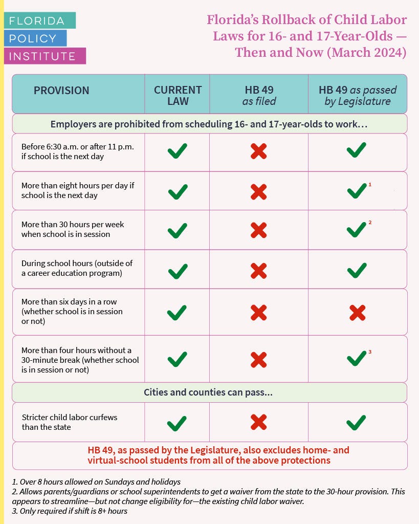 HB 49 / SB 1596 - Let Children Work by Rep. Linda Chaney (R) and Sen. Danny Burgess (R)