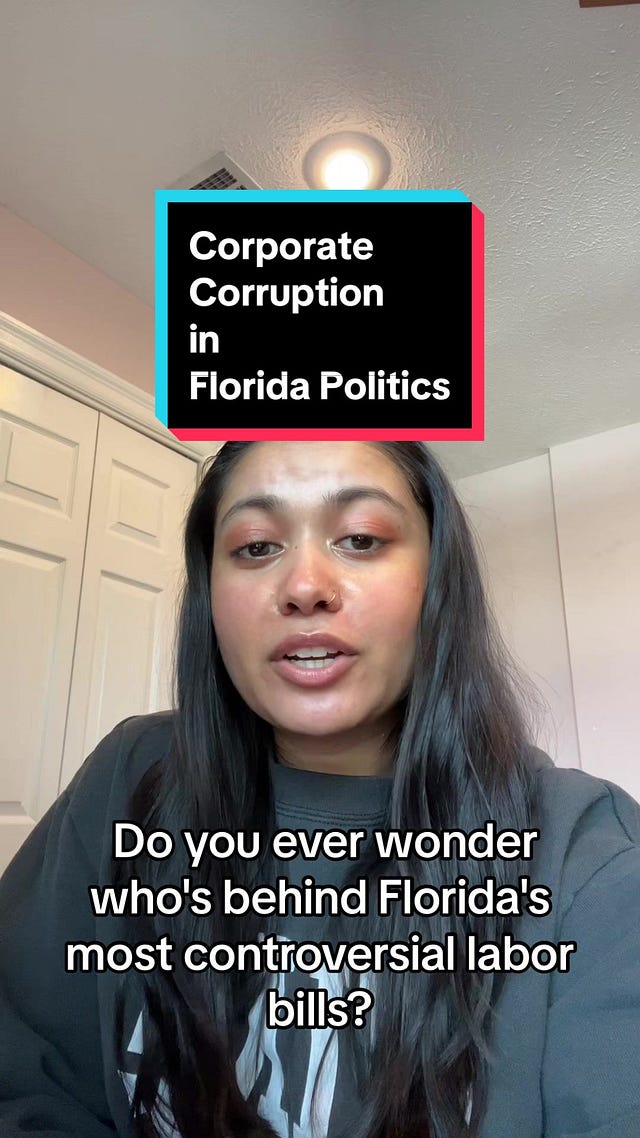 Governor DeSantis still has the power to veto this bill, but given his propensity to give the Florida Chamber of Commerce literally anything and everything they ask for, he will likely sign this bill into law. We will keep you updated, and make sure you’re caught up on the corporate influence behind controversial bills like this one: